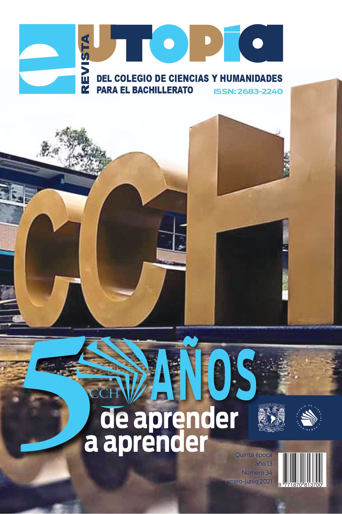 Por ello, en vísperas de la celebración de los primeros 50 años de existencia del Colegio, la revista Eutopía en su número 34 trae a toda la comunidad una serie de artículos para la re exión sobre la vida del cch, los cambios que han permeado la enseñanza docente y la evolu- ción del egreso dentro de la institución. Se aborda desde los procesos de revisión realizados a los planes y programas de estudio, la importan- cia de los Estudios Técnicos Especializados, hasta los principios episte- mológicos como herramientas metodológicas.