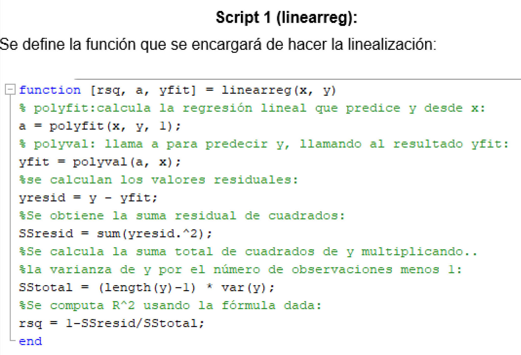 Figura 3. Script 1, función de linealización. Fuente: propia