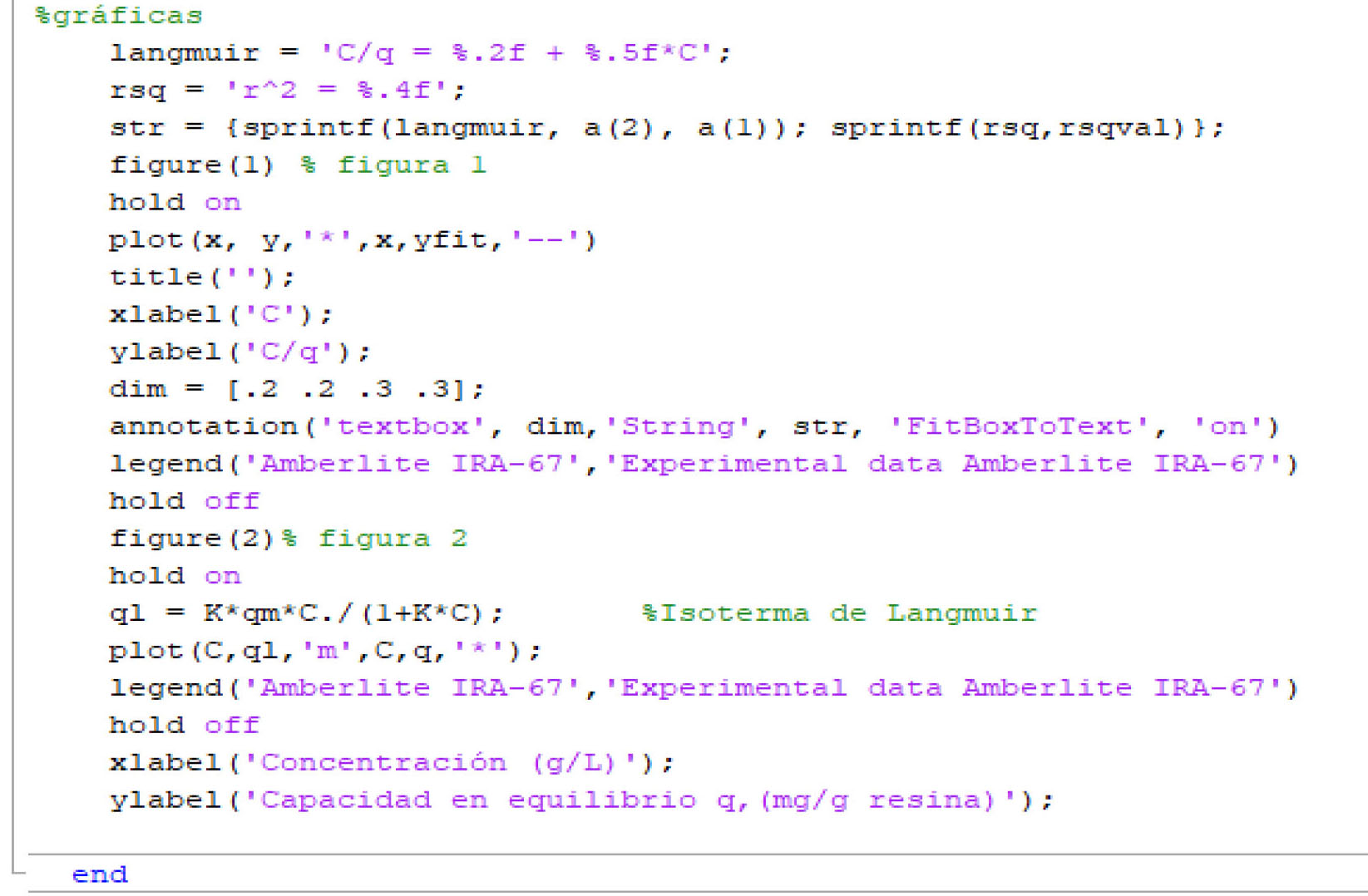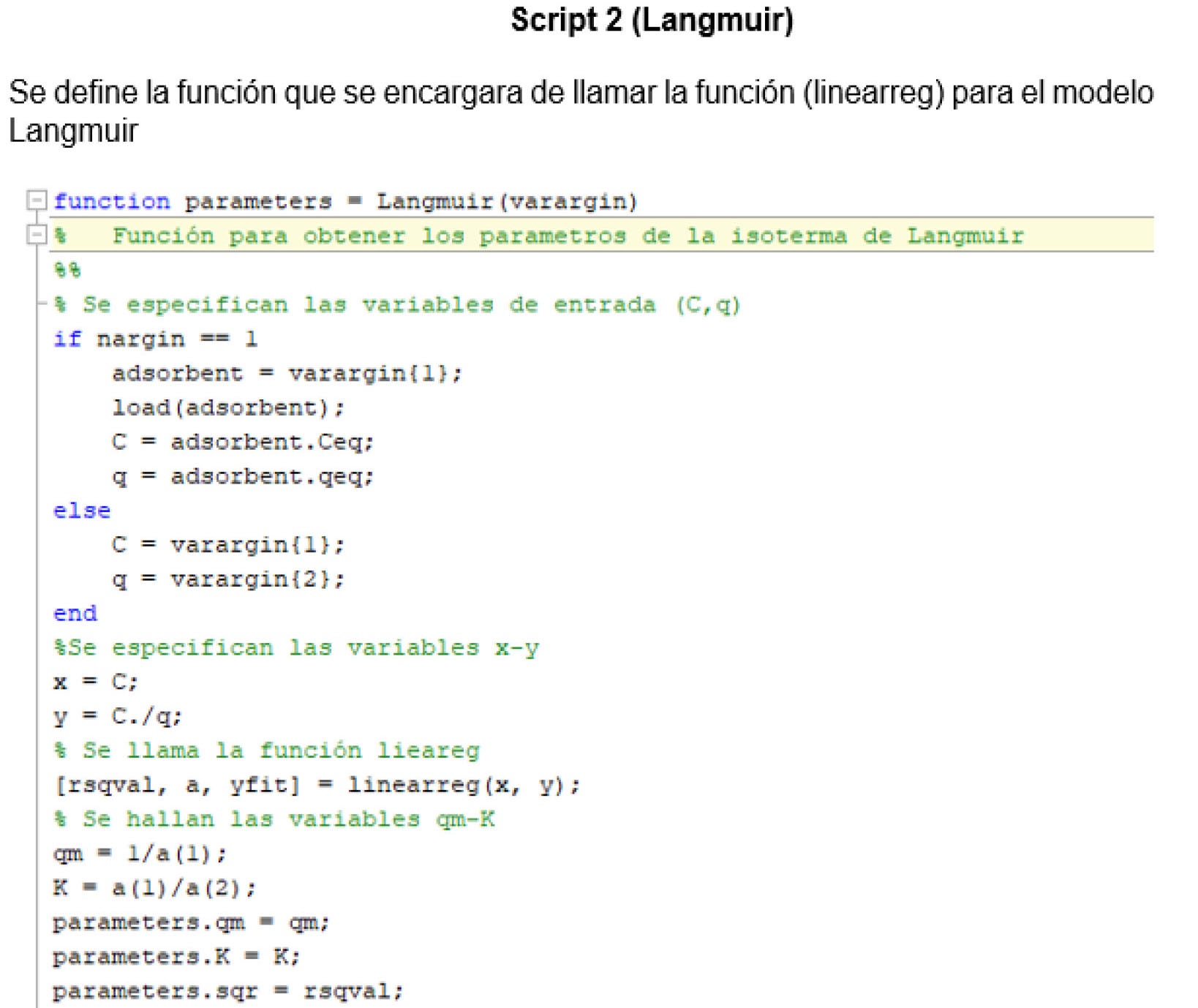 Figura 4. Script 2, función Langmuir. Fuente: propia
