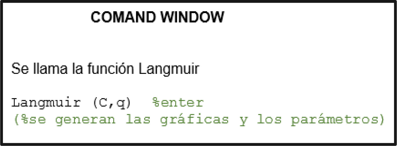 Figura 5. Ejecución de la función Langmuir en la venta de comando. Fuente: propia