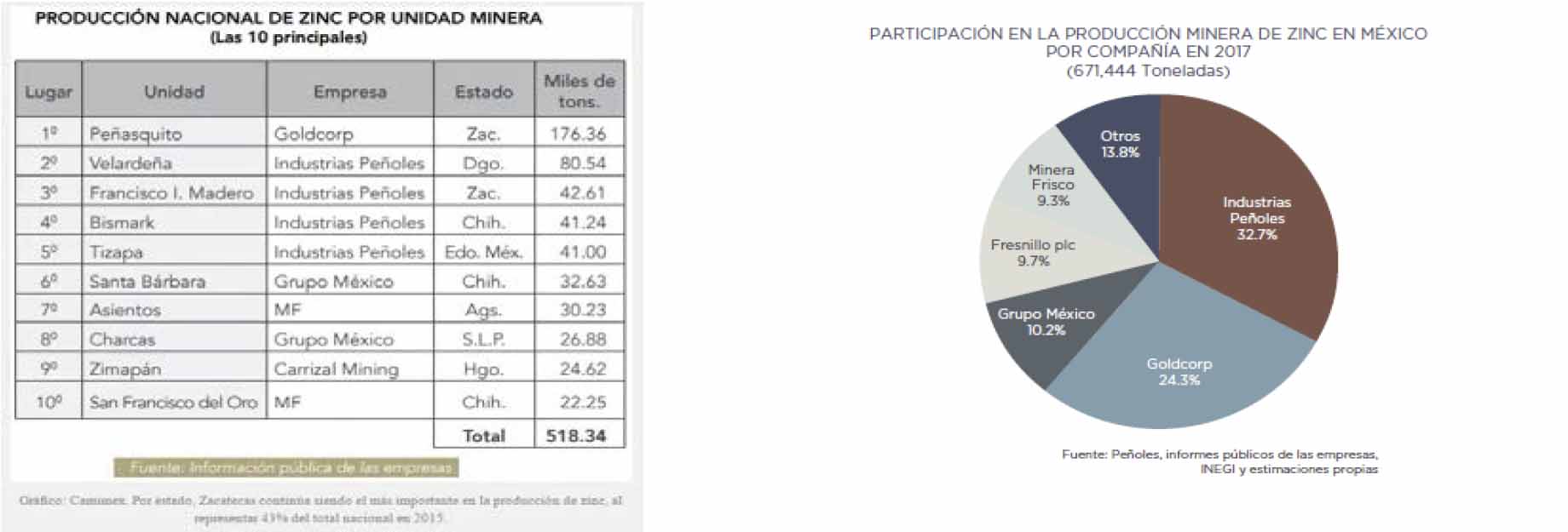 Figura 2. Distribución de la producción de Zinc en México [2]
