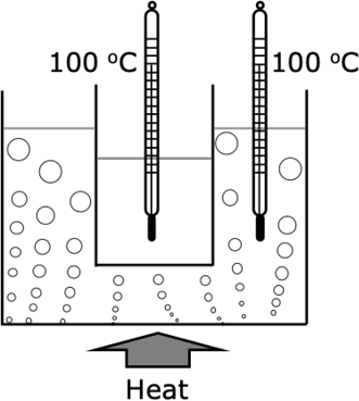 That is why the boiling process (associated with the existence of bubbles rising to the top) does not occur (or, at least, it does not necessarily take place) under the conditions the thermodynamic definition implies. A proof of that can be obtained through a simple experiment, as is indicated in figure 4.