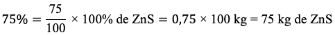 Pelo enunciado da questão, temos que a esfarelita apresenta 75% de pureza, logo para 100 g de esfarelita tem-se