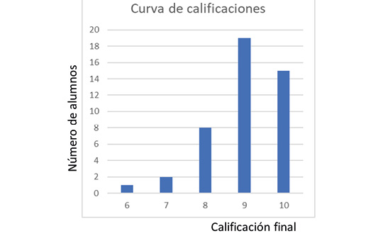 Figura 3. Perfil de calificaciones finales que obtuvieron los estudiantes. La media se encuentra en 9.