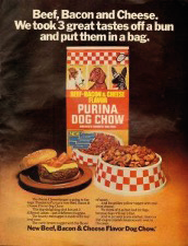 El primer alimento húmedo para perro se desarrolló en 1922 por los hermanos Chappelcopn. Era un producto denominado “Ken-L-Ration” (Figura 3) (Case, 2015). En esa misma época, Samuel Gaines desarrolló un nuevo alimento para perros llamado “harina” que consistía en una mezcla de varios ingredientes secos y molidos que se vendían en bolsas de 45.5 kg (Figura 4) (Case, 2015).