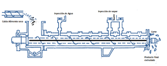 Figura 12. Esquema de extrusores utilizados en la producción de alimentos para perros y gatos. Fuente: Elaboración propia.