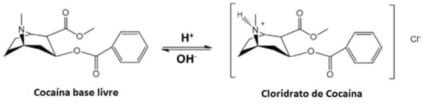 Figura 1. Formas Estruturais da Cocaína em Equilíbrio Ácido-Base. Fonte Oliveira (2017).