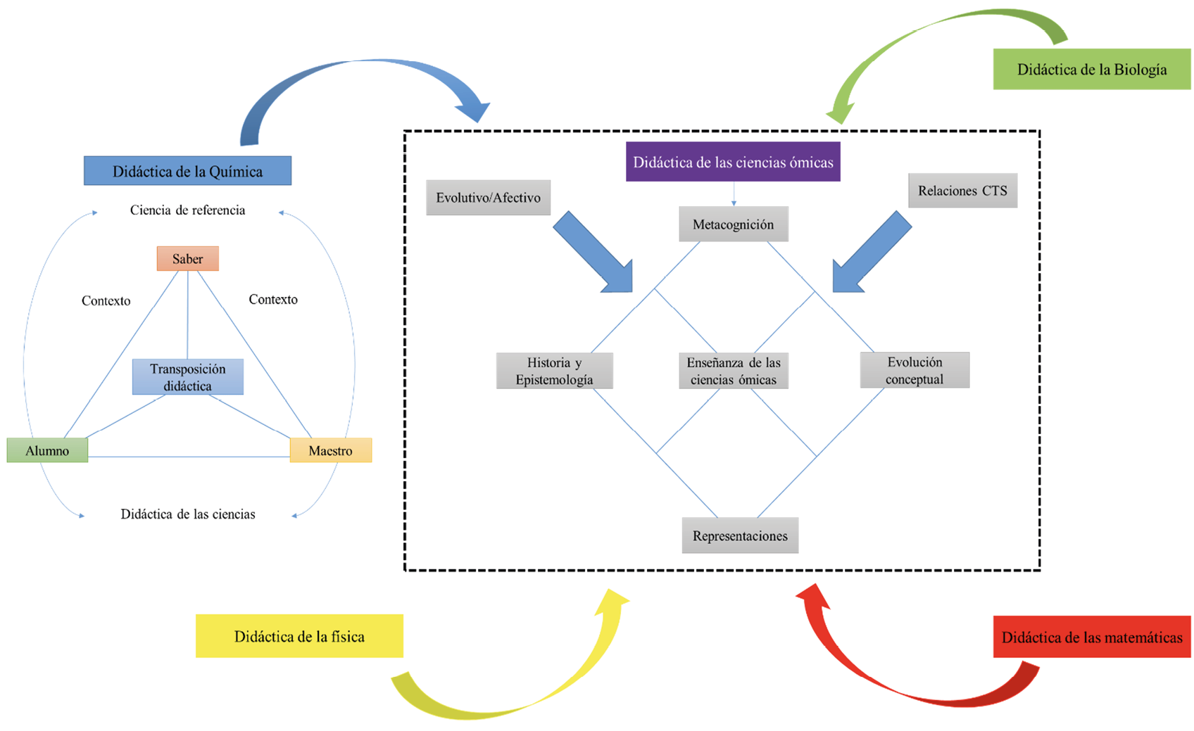 Por ejemplo, la didáctica de la química introduce el concepto de transposición didáctica, que facilita la mediación entre el saber científico, el maestro y el alumno dentro de un contexto educativo. Este mismo efecto se desarrolla de manera similar en las didácticas de la biología, la física y las matemáticas. De esta manera, el enfoque propuesto busca una convergencia didáctica capaz de responder a los desafíos educativos actuales en la formación de profesionales en ciencias ómicas.
