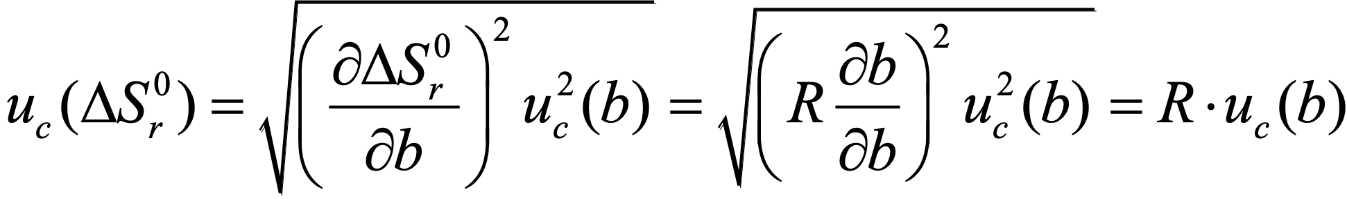 Asimismo, se puede evaluar la precisión de las mediciones, estimando las incertidumbres de la pendiente m y la ordenada al origen b, junto con el coeficiente de correlación r, respectivamente, de tal manera que se puedan determinar los valores de las incertidumbres para Δhr0 y Δsr0 a 298.15 K, para un conjunto de N = 18 pares de datos xi, yi (Miller, J. N. et al., 2005; GUM JCGM 100, 2008; VIM JCGM 200, 2012; Williams A. et al., 1995):