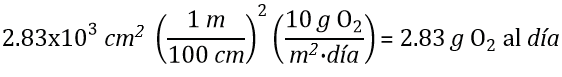 A partir del área de un nenúfar promedio y conociendo que se pueden producir 10 gramos de oxígeno molecular por metro cuadrado al día, se puede obtener la masa de oxígeno molecular que se produce en un día.