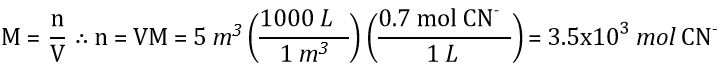 Por último, se determina el volumen de permanganato de potasio a partir de la ecuación de molaridad que relaciona la cantidad de sustancia con el volumen.