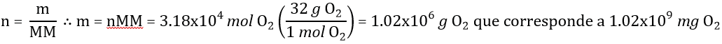 Se determina la cantidad de sustancia de hierro que se necesita eliminar, considerando el volumen del cuerpo de agua.