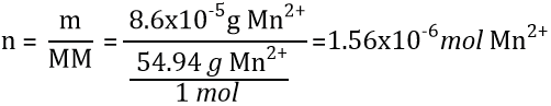 Con esta información, se determina la cantidad de sustancia de Mn2+ presente en un litro de disolución.