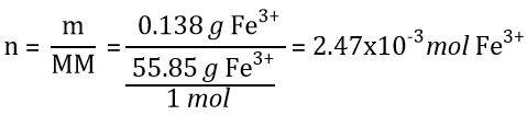 Con esta información, se determina la cantidad de sustancia de Fe3+ presente en un litro de disolución.