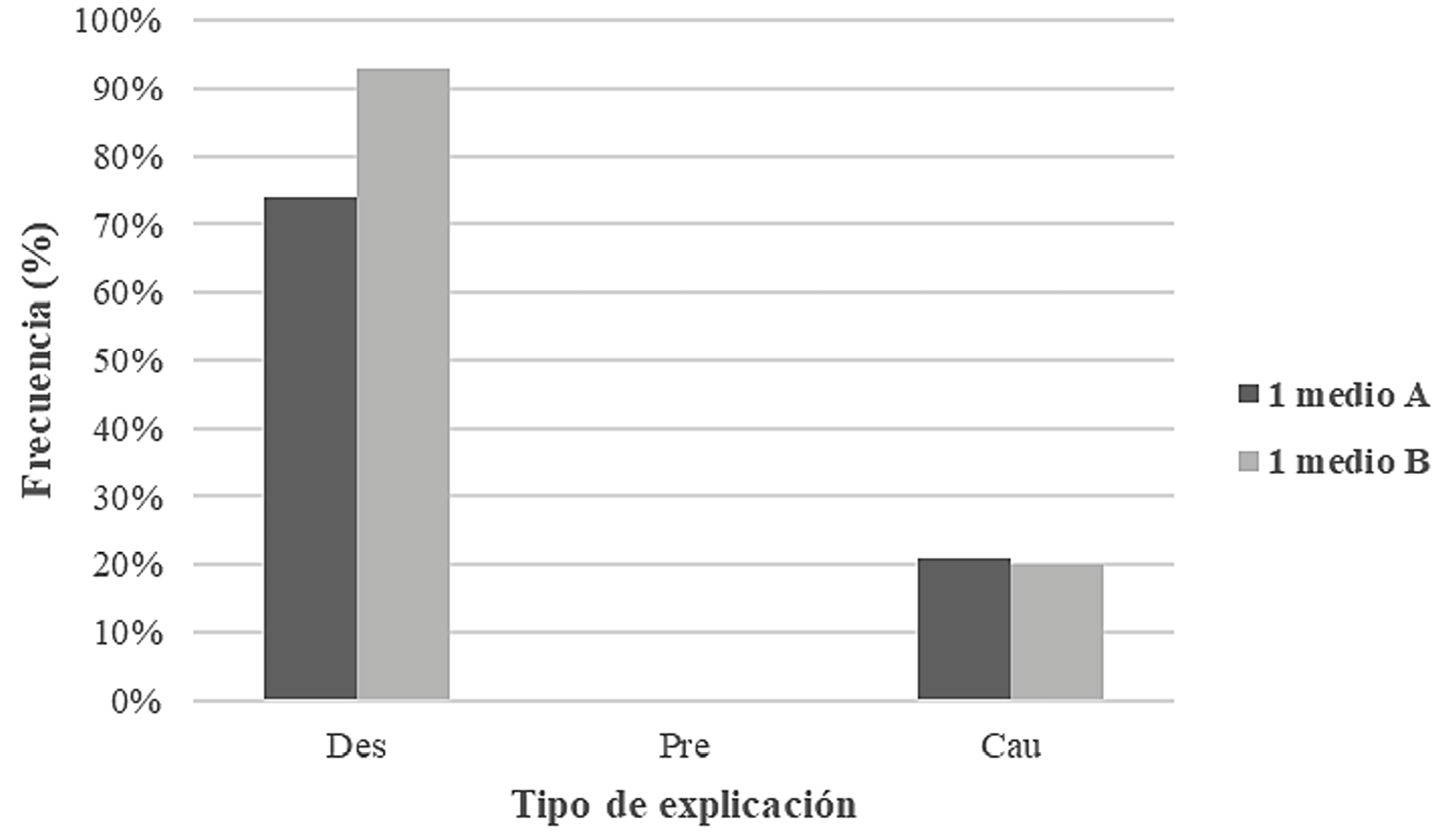 Gráfico 2. Distribución de narrativas estudiantiles según tipología explicativa. (Des = descriptiva; Pre = predictiva; Cau = causal).