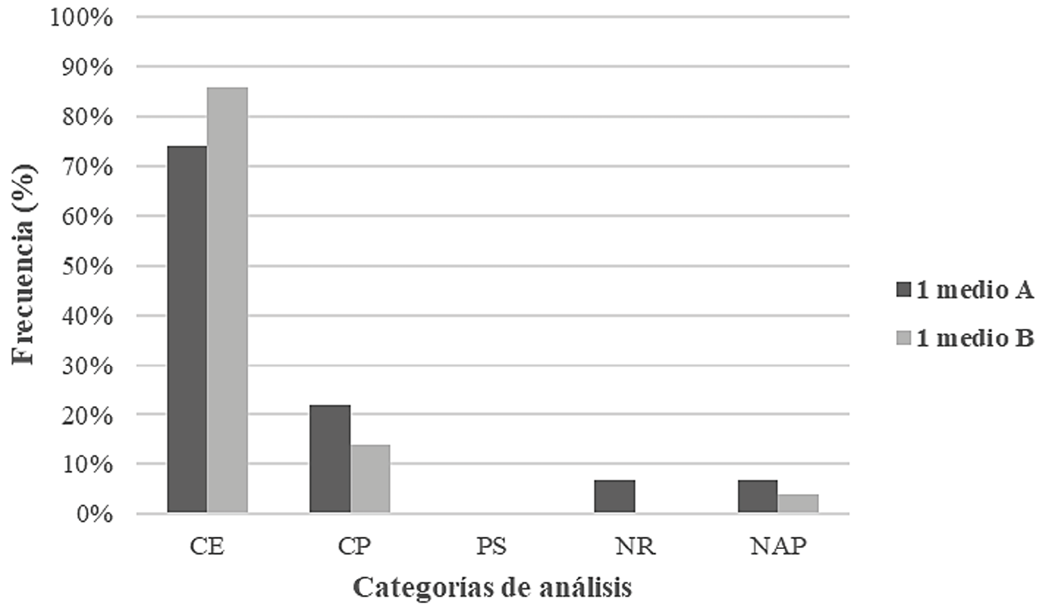 Gráfico 3. Distribución de explicaciones científicas según tipología explicativa. (CE= aspectos económicos y sus controversias; CP= conflictos políticos; PS= problemática sanitaria; NR= no responde; NAP= no apunta a la pregunta).