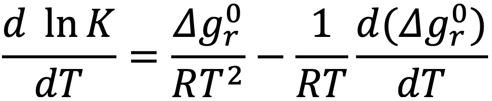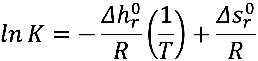 Rearreglando la ecuación anterior, recordando que −RT In K = Δhr0 − TΔs, la Eq. 23 se convierte en: