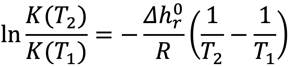 Integrando la Eq. 20 entre T1 y T2, y considerando que la entalpía y la entropía de reacción Δhr0 y Δsr0 son independientes de la temperatura, se obtiene:
