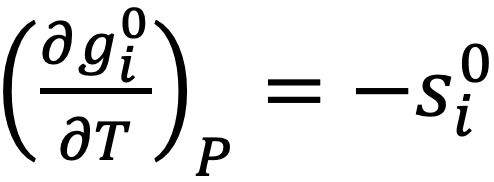 Considerando que Δgr0 es la suma de los potenciales químicos de la sustancia pura (μi0) multiplicados por su coeficiente estequiométrico (νi), Δgr0 = Σiνi μi0, y que en donde si0 es la entropía molar de la sustancia pura,